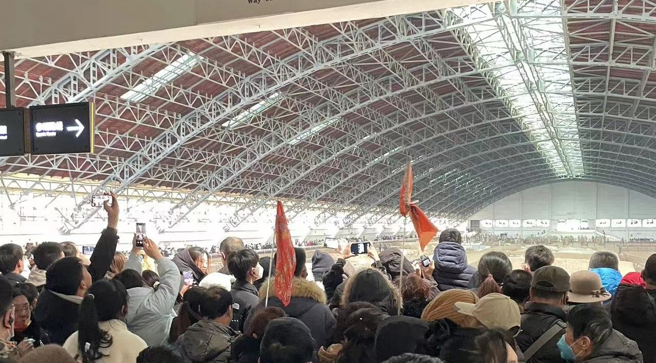 春節中約36万人が訪れた兵馬俑(陝西省西安市)。幾重にも観光客