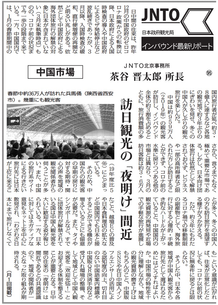 【日本政府観光局インバウンド最新リポート 95】中国市場 訪日観光の「夜明け」間近 JNTO北京事務所 茶谷晋太郎 所長