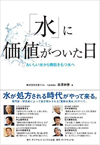 水素水や活性酸素という単語は日常的に使用され、多種多様な水素ボトルや生成する機械が売られているが、今後は水を処方する時代がやってくる。以前は水と空気と安全はタダと言われ、「水を買う」という概念が全くなく、「日本で水が売れるわけがない」と言われていた。