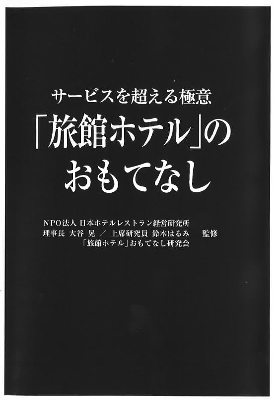 日本の旅館・ホテルの「おもてなし」に焦点を当て、各分野の専門家の経験に基づいた知識と、最前線のテクニックをまとめた1冊。「過去に旅館・ホテルのノウハウを紹介した書籍はあったが、『働き方改革』を念頭に女将やスタッフの役割から旅館・ホテルのこれからの役割まで網羅して書かれた書籍は業界初」(発売元)。