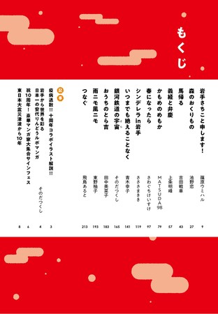 掲載されている作品は、こちらも「いわてマンガプロジェクト」の一環として運営しているWEBマンガサイト「コミックいわてWEB」で配信されている岩手ゆかりの漫画家(池野恋さん、吉田戦車さん、さわぐちけいすけさんなど)による12作品となっています。