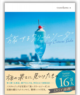 これまでクリームソーダとともに全国を旅し、各地の魅力を再発見してきたtsunekawa氏。美ヶ原の頂上で見た朝焼けや、佐渡の万畳敷の夕日、雄大な桜島――各地で出会った忘れられない景色と、その景色をグラスの中に再現したクリームソーダの写真は、まさにノスタルジック。ページをめくるうちに日常を飛びだし、ともに各地を旅している気分になれる爽快な一冊です。