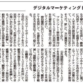 (1)カスタマーサポートとFAQ対応=ChatGPTをカスタマーサポートのツールとして活用することで、お客さまからの問い合わせに迅速に対応できる。ChatGPTを訓練し、一般的な質問に対する回答を学習させることで、自動応答システムとして運用できる。これにより、人手不足や繁忙期でも迅速な対応を実現し、カスタマーエクスペリエンスを向上させる。
