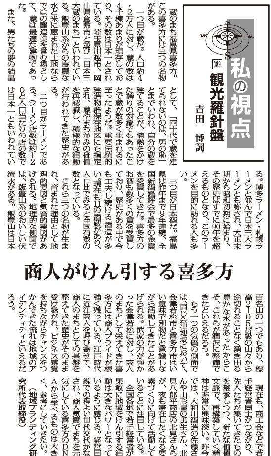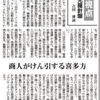 全国各地で若手経営者が果敢に地域をけん引する活動は大きなパワーとなっているように感じる。経営目線での程よい世代交代がなされ、商人気質でまちを元気にしている喜多方のDNAから学べるものは大きく、参考にしていきたい。