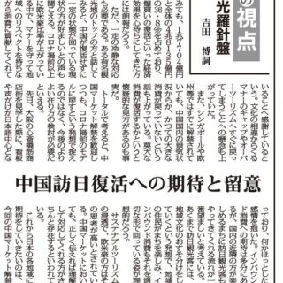 【私の視点 観光羅針盤 393】中国訪日復活への期待と留意 吉田博詞