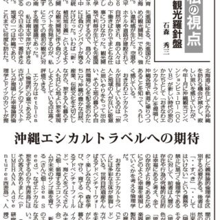 私は南太平洋が大好きなので日本の中で一番好きな地域の一つは沖縄であり、これまでに何度も訪れた。北海道に移住してから沖縄を訪れる機会が減少し、寂しい思いを感じていたが、今年1月に沖縄観光コンベンションビューロー(OCVB)が新しい時代の旅のかたちとして「おきなわエシカルトラベル」を提唱し、沖縄各地で軌道に乗りつつあることを知って、うれしく感じている。