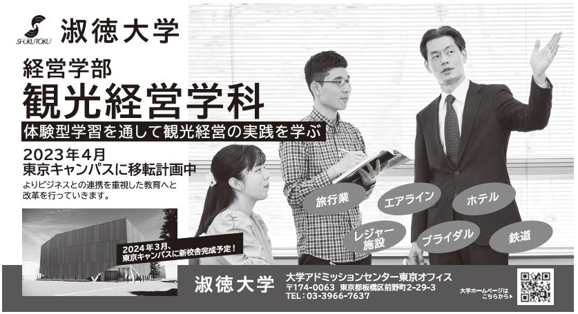 淑徳大学(1965年開学)は2012年に経営学部を開設し、経営学科、観光経営学科を設置して今年で丸10年となる。23年4月には、現在の埼玉キャンパス(埼玉県入間郡三芳町)から、東京キャンパス(東京都板橋区)への学部移転を計画している。