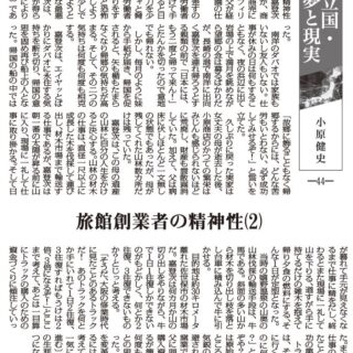 旅館業の創業者の精神性について、父・小原嘉登次のことに触れているが、商都大阪での初めての商売に失敗した嘉登次は、フィリッピン・ダバオで小父が経営するマニラ麻の農園の仕事にたどり着いた。
