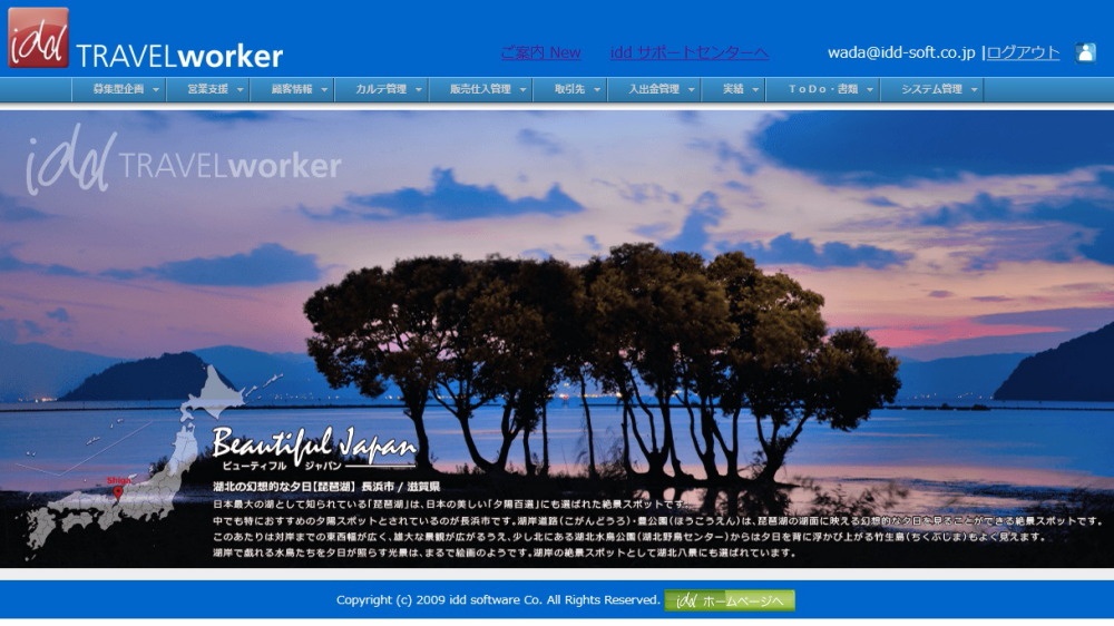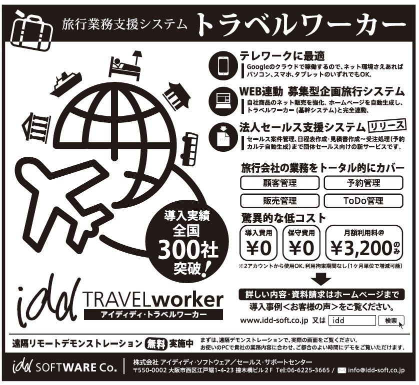 旅行システムはそれまでフルオーダー型システムなどを利用していたが動作の遅さなどもあり、業務効率と生産性向上を図るためトラベルワーカー導入を決めた。コストの安さも大きなポイントだった。システムは、グーグルのクラウドサービスを利用しているため初期費用と月額保守料が不要。月額のアカウント料のみで使える。また、インターネット環境さえあれば自宅など、どこからでも操作できる。