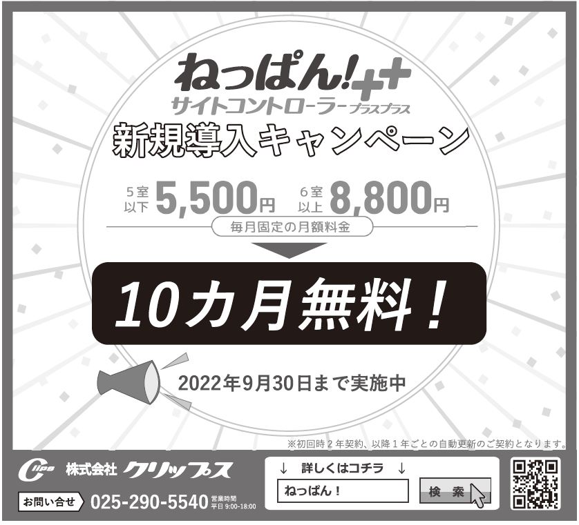 クラウド型のサイトコントローラー「ねっぱん!サイトコントローラー++(プラスプラス)」などを提供するクリップス。同社ではこのほど、クラウド型宿泊管理システム「ねっぱん!イージー会計」にこの秋、「クイックチェックイン機能」をリリースすると発表した。構造計画研究所の「RemoteLOCK」と連携し、チェックイン時の業務負担を軽減する。