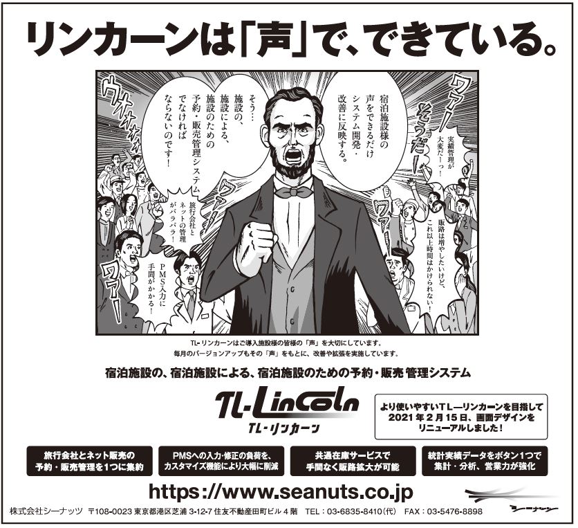 TL―リンカーンは、旅行会社とOTAからの通知を一元管理し、残室・料金調整が一括でできる。導入施設は約5千で、対応販売先は旅行会社、OTAを合わせて134社。導入後のフォロー・サポート体制の充実と、ユーザーの声を商品、サービスに反映する点が評価されている。