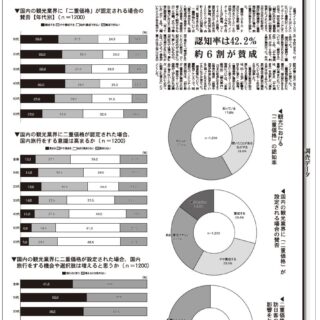 二重価格については「海外で存在する、外国人観光客向け商品やサービスの価格を、現地居住者より高く設定するもの」と定義。その上で尋ねた観光における二重価格の認知度は、「知っている」が17・8%。「聞いたことがある気がする」を合わせると、42.2%だった。