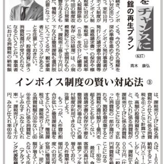 前回に引き続き、インボイス制度の賢い対応法について説明しよう。来年10月1日よりインボイス制度が導入される。インボイス制度とは、複数税率に対応した消費税の仕入税額控除の方式をいう。今回の制度改正は旅館・ホテルの日常業務に大きな影響を与えるものである。また、情報システムの改修も必要となってくる。今のうちから理解を深め準備を進めておこう。