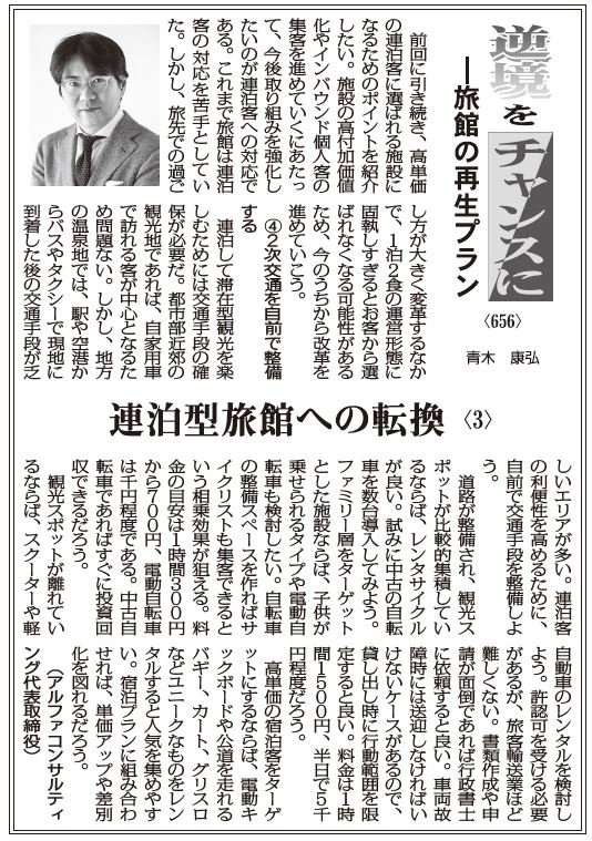 【逆境をチャンスにー旅館の再生プラン 656】連泊型旅館への転換〈3〉 青木康弘