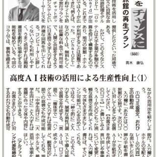 このように、無料や低コストで導入可能なこれらのAIは、口コミ返信文の作成やクレームへの対応など、顧客対応に大いに貢献してくれる。地方の旅館・ホテルこそ、最先端技術を活用して効率化を実現してほしい。