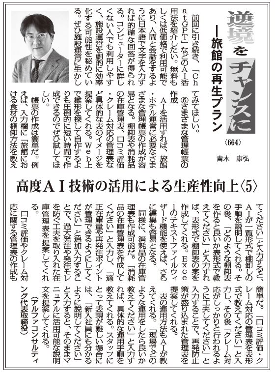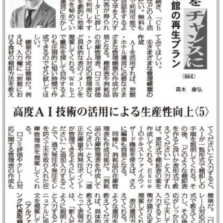 【逆境をチャンスにー旅館の再生プラン 664】高度AI技術の活用による生産性向上〈5〉 青木康弘
