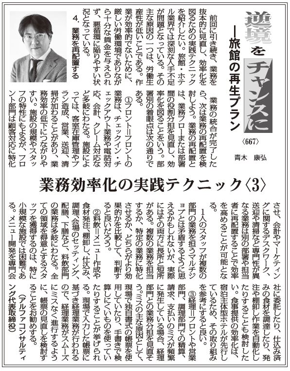 【逆境をチャンスにー旅館の再生プラン 667】業務効率化の実践テクニック〈3〉 青木康弘