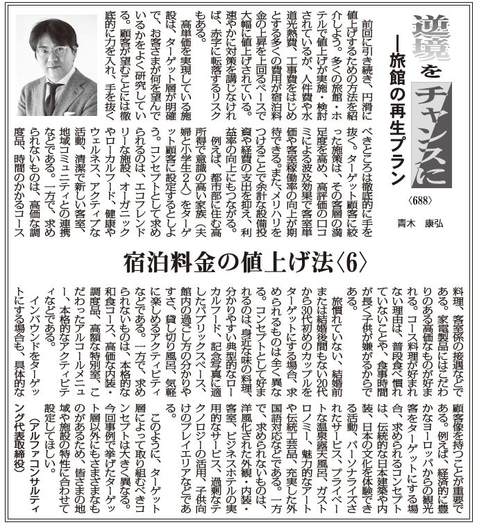 前回に引き続き、円滑に値上げするための方法を紹介しよう。多くの旅館・ホテルで値上げが実施・検討されているが、人件費や水道光熱費、工事費をはじめとする多くの費用が宿泊料金の上昇を上回るペースで大幅に値上げされている。速やかに対策を講じなければ、赤字に転落するリスクもある。