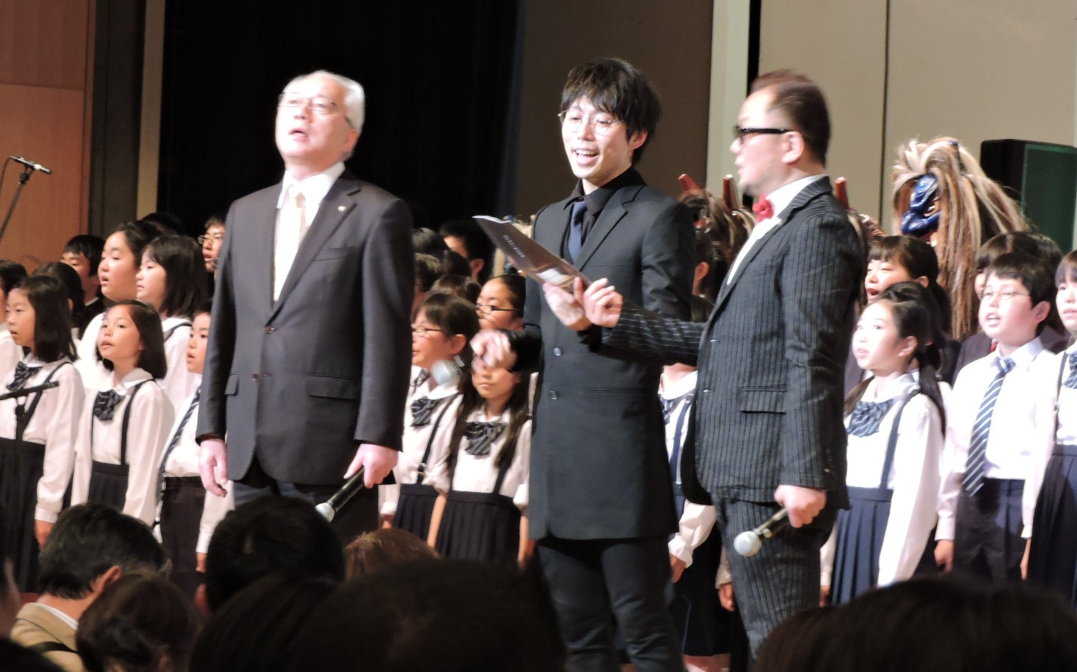 故郷が嫌いで、県内の高校卒業後は北海道の大学に進学し、路上ライブを経てメジャーデビューした高橋さん、離れて初めて秋田の良さに気が付いたという。秋田県は人口減少率や、高齢化率が全国トップクラス、その進行に歯止めがかからない。でも自然が豊かで、人と人とのつながりが温かい。そんな秋田をもっと知ってほしい、もっと元気づけたい、という思いがFESを実現させた。県のイベントにも積極的に参加しており、写真は2018年5月に秋田市で開催されたイベントで県民歌を合唱する高橋さん(中央)の様子だ。