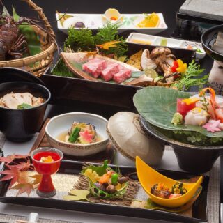 季節の料理には、イセエビやアワビに加え、全国各地の高級食材も使う。例えば、夏には京料理で知られるハモの会席料理、秋にはマツタケをふんだんに使った秋の味覚御膳、冬にはフグ三昧の会席料理のプランなどを提供している。