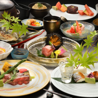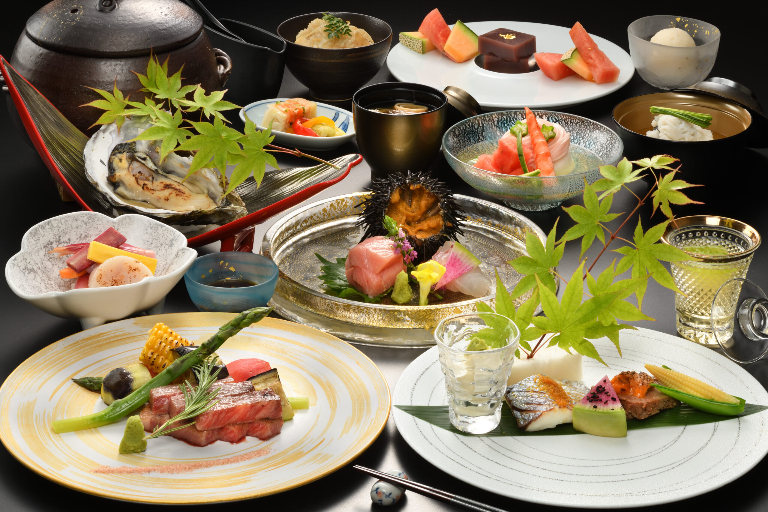 「オープンキッチンレストラン信達」「料亭 桃里」では、できたての料理を宿泊者に提供する。夕食は、福島牛や川俣シャモをはじめ、魚介や地場食材などの味覚がずらりと並ぶ会席料理。全ての料理や飲み水に使用するのは、宿から山を分け入った先にある「たんがら山」の伏流水だ。土湯の清流の恵みをふんだんに使い、料理長が腕を振るう。素材の味わいを存分に引き出した逸品の数々に心躍るはずだ。水質日本一にも選出された軟水で出汁(だし)を取った吸い物などの椀(わん)物の味の良さは、多くの宿泊者の高評価レビューからもうかがえる。