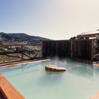 天然木を浴槽に使ったお風呂の湯巡りができる。「極楽湯」は山々と満天の星空が広がる展望露天風呂。モダンな新館にある「万天の湯」は檜(ひのき)を配した風呂で、大きな窓からの眺望が抜群。