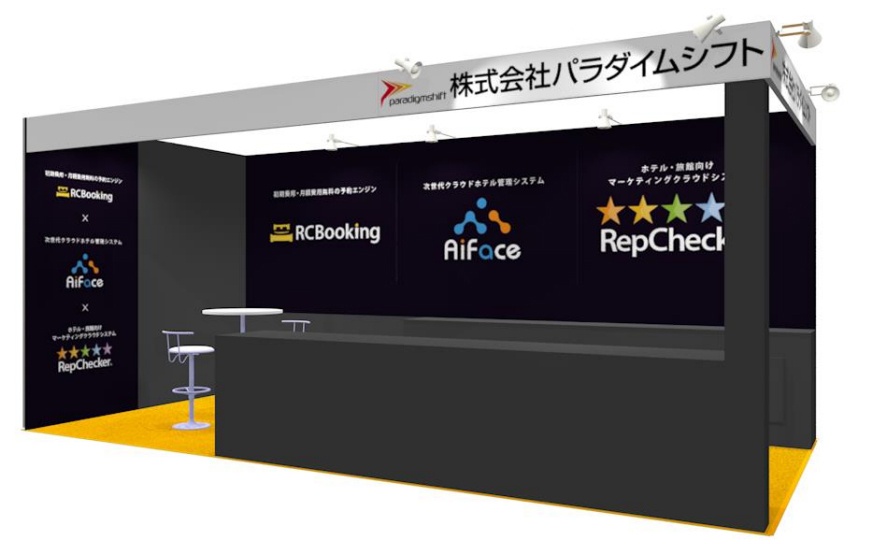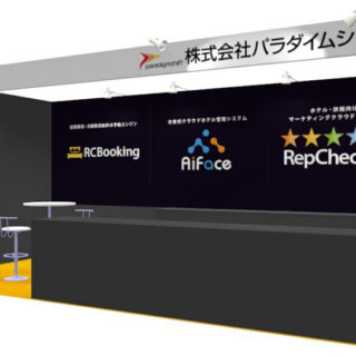 ホテル旅館向けIT支援会社のパラダイムシフトが、HCJ2022の出展ブースで主に紹介するのは、初期費用と月額利用料が無料の自社直販用宿泊予約システム「RC Booking(アールシーブッキング)」と、利用料が月額1室あたり500円からのPMS(ホテル管理システム)「AiFace(エーアイフェイス)」。