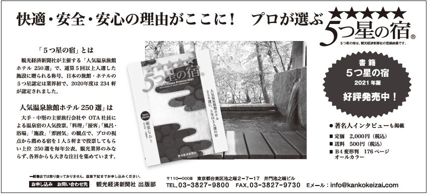 • 最新の「人気温泉旅館ホテル250選」「5つ星の宿」「5つ星の宿プラチナ」は?