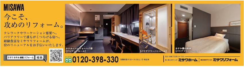 テレワークやワーケーション需要へ。バリアフリーで誰もがくつろげる宿へ。経験豊かなミサワリフォームが、宿のリニューアルをお手伝いします。
