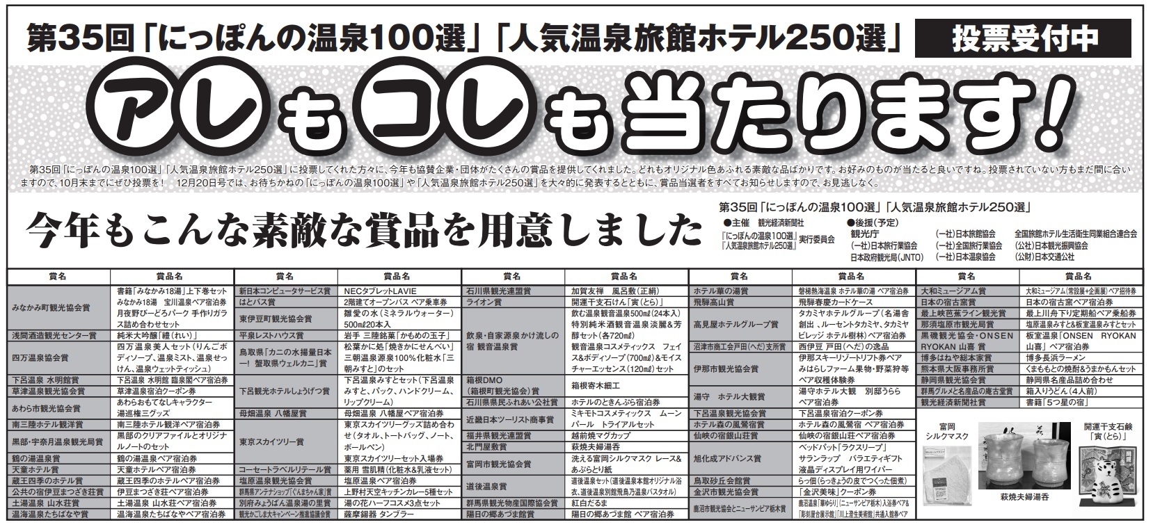 観光経済新聞社主催「第35回にっぽんの温泉100選・人気温泉旅館ホテル250選」投票受付中!