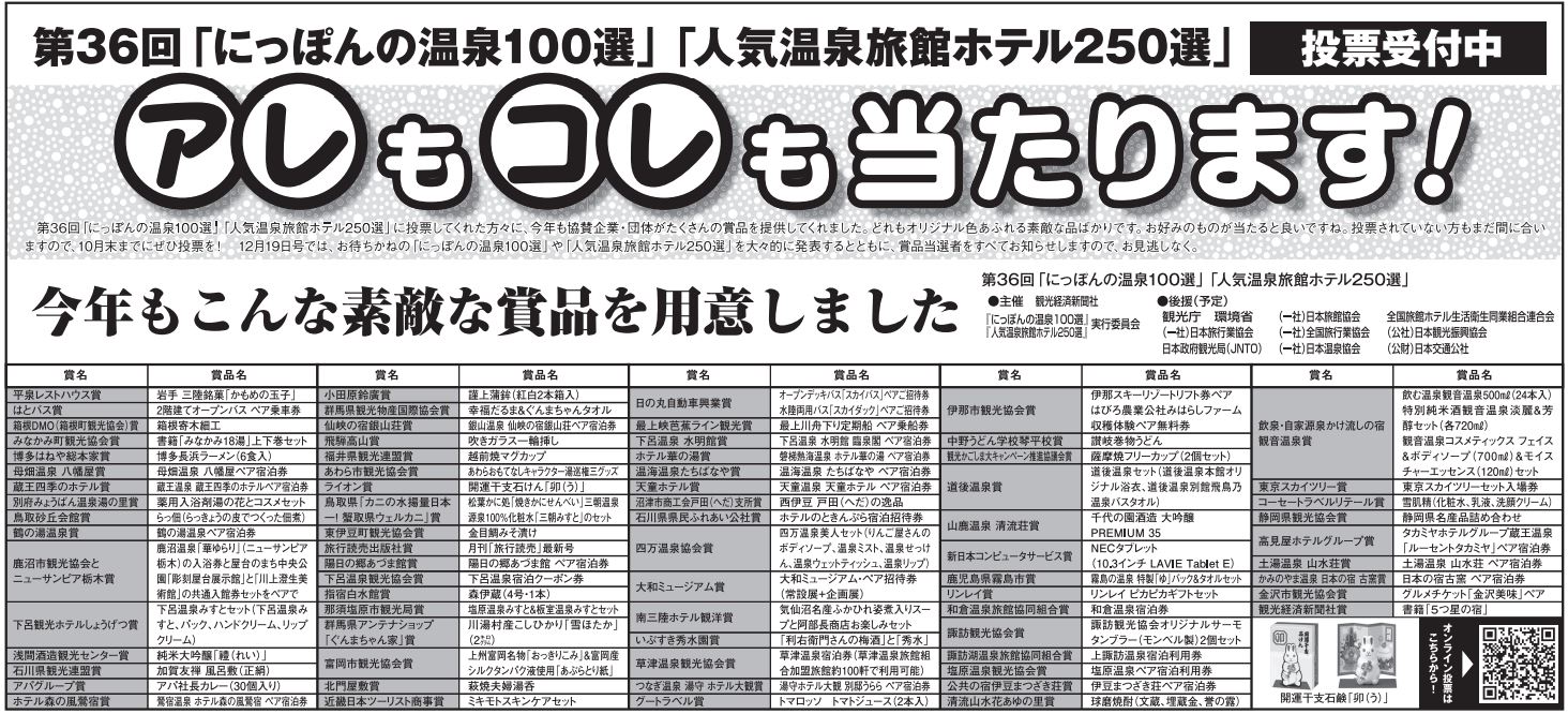 あなたの投票で「にっぽんの温泉100選」が決まります。