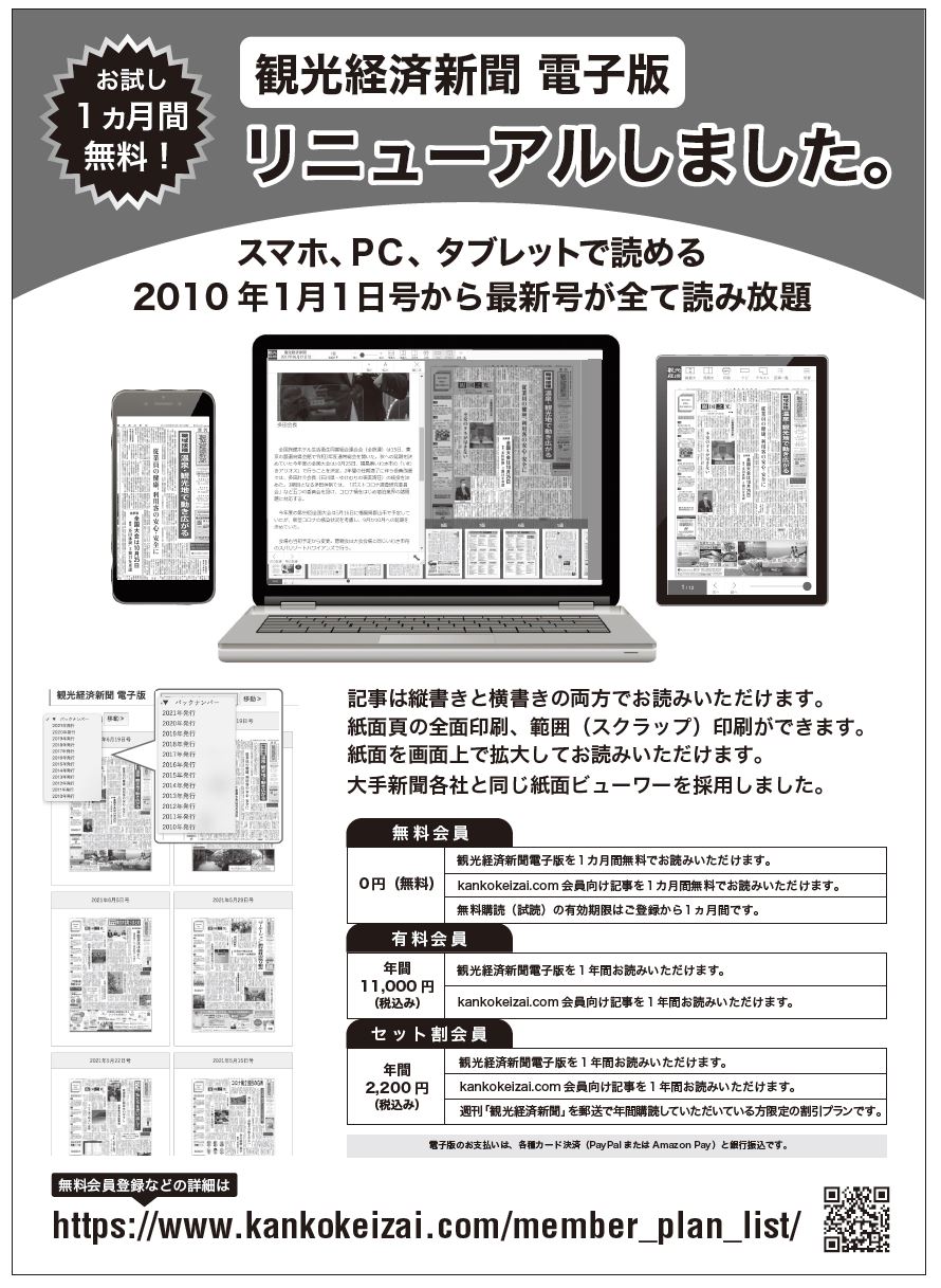 お試し1ヵ月間無料。観光経済新聞電子版