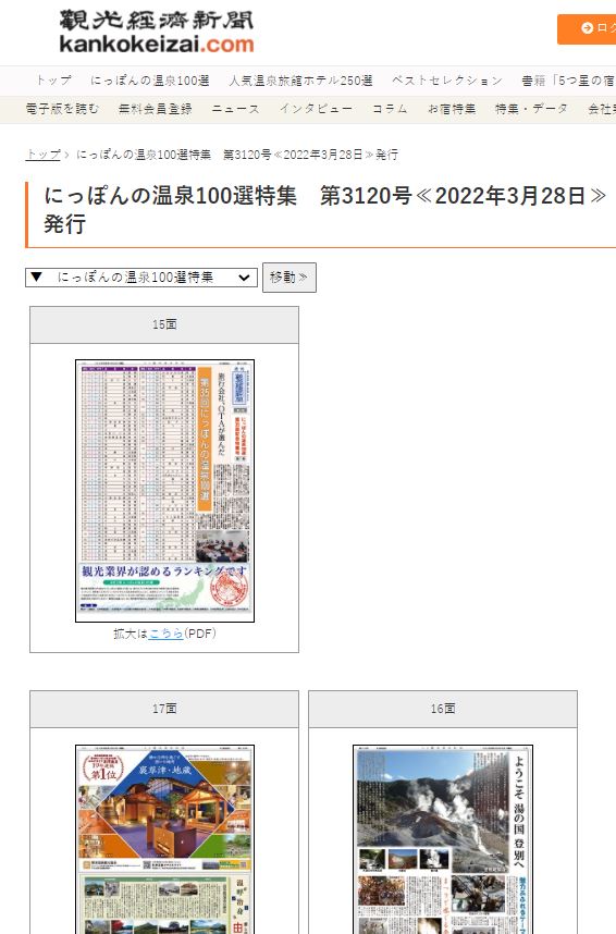 観光経済新聞社が主催する「にっぽんの温泉100選」は、創刊1500号記念事業の一環として1987年にスタート。旅行のプロである旅行会社やOTAなどの投票によって人気の温泉地を探るのが目的だ。昨年に節目となる35回を迎えたことから、記念特集として、改めて100選と、入選した主な温泉地を紹介する。