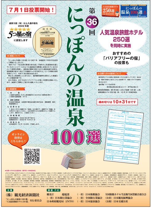 にっぽんの温泉100選、投票締め切りは10月31日