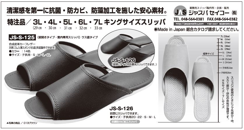 ジャスパセイコー(株)は、業務用スリッパ専門の企画販売を行なっています。受注生産システムによる旅館・ホテルなどの宿泊施設用スリッパを主体に取り扱っています。(旅館・ホテル・病院・学校・事業所・ゴルフ倶楽部など)