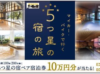 抽選で100組200名様に「5つ星の宿」ペア宿泊券10万円分が当たる