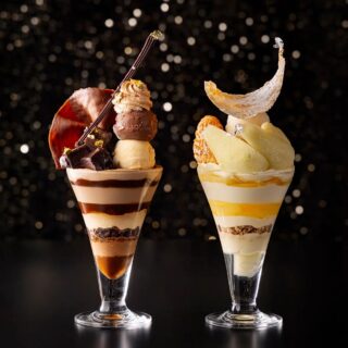 料金:プレミアム チョコレートパフェ・ラグジュアリー ラ・フランスパフェ 各4,180円