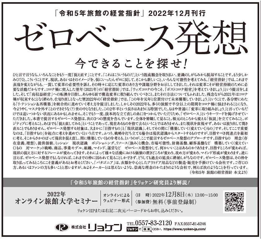 ▷令和5年 旅館の経営指針発表 ゼロベース発想 今できることを探せ!