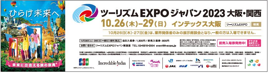 ツーリズムEXPOジャパン2023 大阪・関西 10月26日(木)~29日(日)インテックス大阪