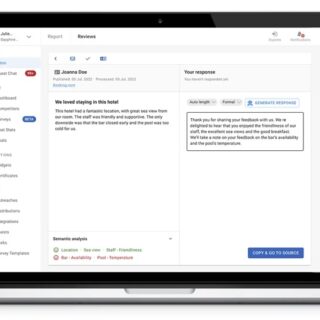 この度リリースされるクチコミ受信トレイとresponseAIの機能は、宿泊施設に多くのメリットをもたらすべく開発されました。新たなクチコミ受信トレイはクチコミ管理業務により効率的で合理的なワークフローをもたらし、クチコミ管理業務の担当者がゲストが投稿するクチコミコメントに素早くアクセスし、迅速に対応することを可能とします。さらに、resopnseAIは投稿されたクチコミコメントからゲストの肯定的(ポジティブ)および批判的(ネガティブ)な感情を認識し、それに応じたトーンに合った返答コメントを自動生成します。また、TrustYouのresponseAIは、多言語に対応できる翻訳機能を備えています。