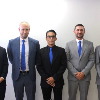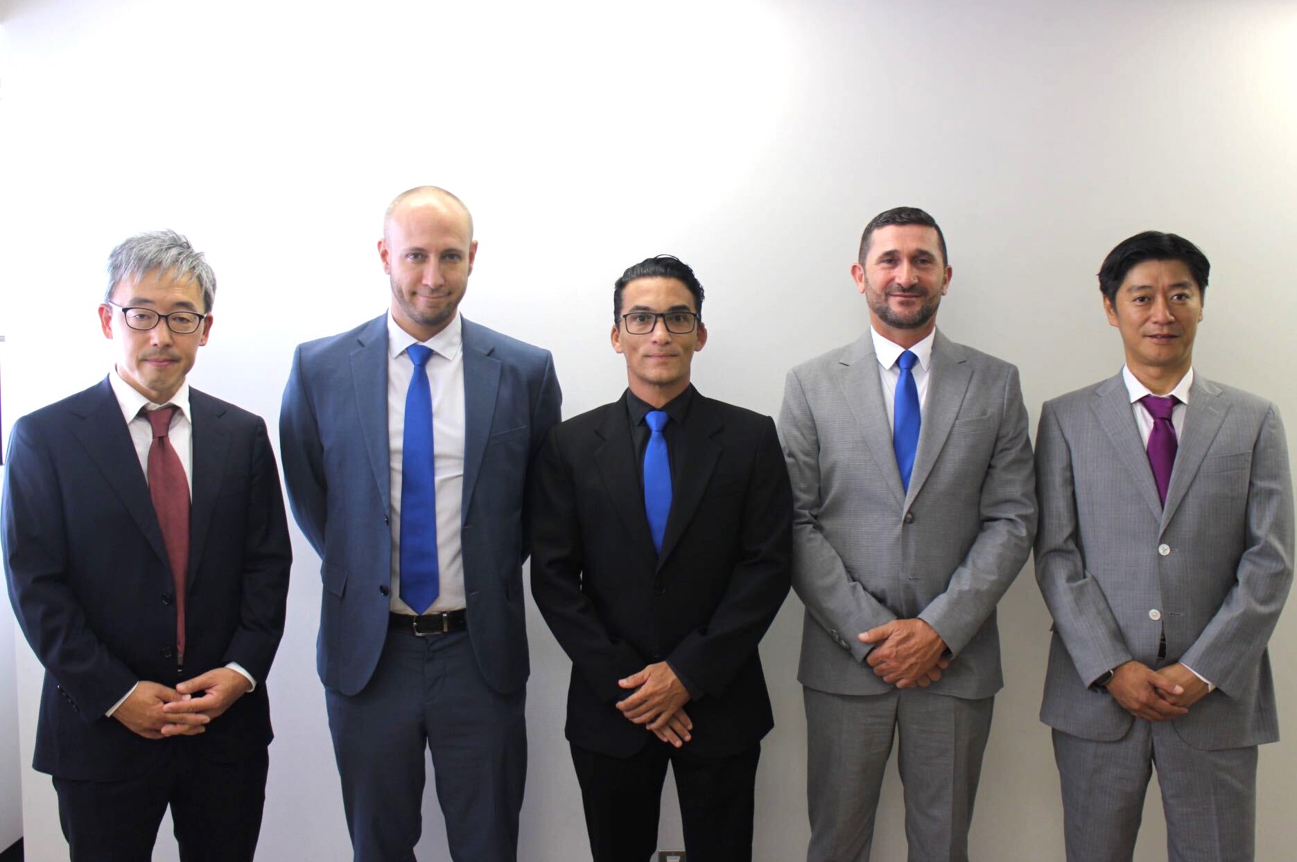 トリプラの高橋和久代表取締役CEO(右)とCTOの鳥生氏(左)、BookandLink社の関係者ら(中央)