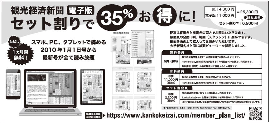 バックナンバーも読み放題! 年間たったの2200円(セット割)【観光経済新聞電子版】