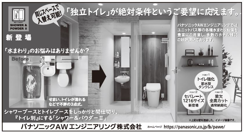 システムバスやユニットバスなどの水回り設備を提供するパナソニックAWエンジニアリング(東京都品川区)。昨年9月に「シャワー&パウダーⅡ」をリニューアルし、新発売した。