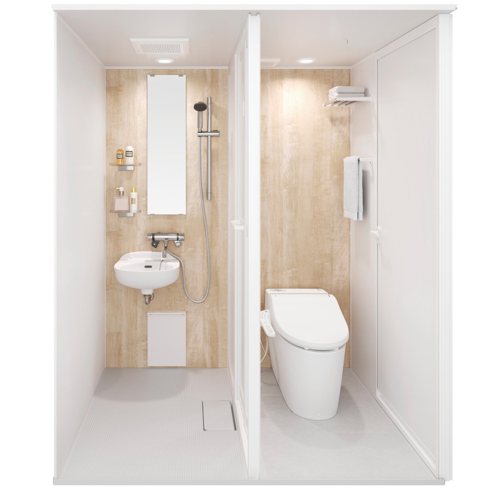 居室空間の広さを損なうことなく、バス・トイレが分離できると好評。「近年では、集合住宅はもとより、非住宅物件の改築・新築案件での採用が増加している」と同社。