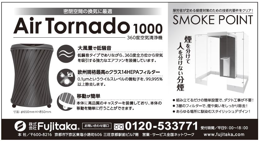 Fujitaka(フジタカコーポレーション)は現在、ウイルス対策製品の充実を図っているが、その一環としてこのほど業務用の空気清浄機「AirTornado(エアトルネード)1000」を発売した。