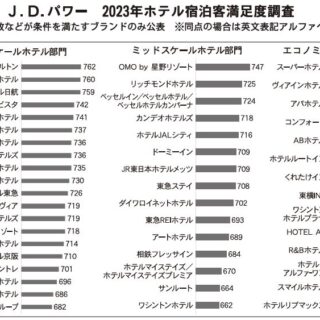 顧客満足度に関する調査・コンサルティングの国際的な専門機関、J.D.パワージャパン(東京都港区)は、ホテル宿泊客の満足度に関する2023年の調査結果を発表した。コロナ中は余裕を持ったサービス提供が可能だったためか、満足度が高い傾向にあったが、最近の宿泊料金の上昇に伴い「料金」に対する顧客の評価が低下したことなどで、ホテルの宿泊客満足度は22年調査に比べて低下した。ただ、朝食などの評価が高まり、宿泊客満足度はコロナ前の19年と比べると上昇した。