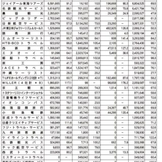 総取扱額が19年度実績を上回ったのは、富士急トラベル(129.6%増)、ケイライントラベル(22.4%増)、WILLER(19.0%増)、東武トップツアーズ(8.0%増)など5社。