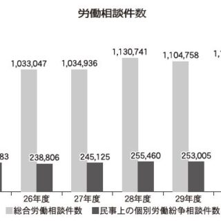 労働相談件数は年々増加傾向にある(出処=厚生労働省)=グラフ。