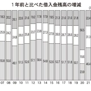 「減少」は19年が23.9%と前年比26.2ポイント減。その後は46.4%、50.1%、51.9%と3年連続で上昇した。