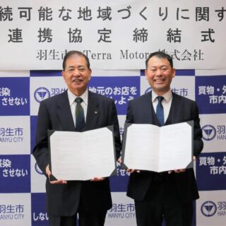 埼玉県羽生市は5月26日、テラモーターズと連携協定を締結した。EV充電100基を導入する。